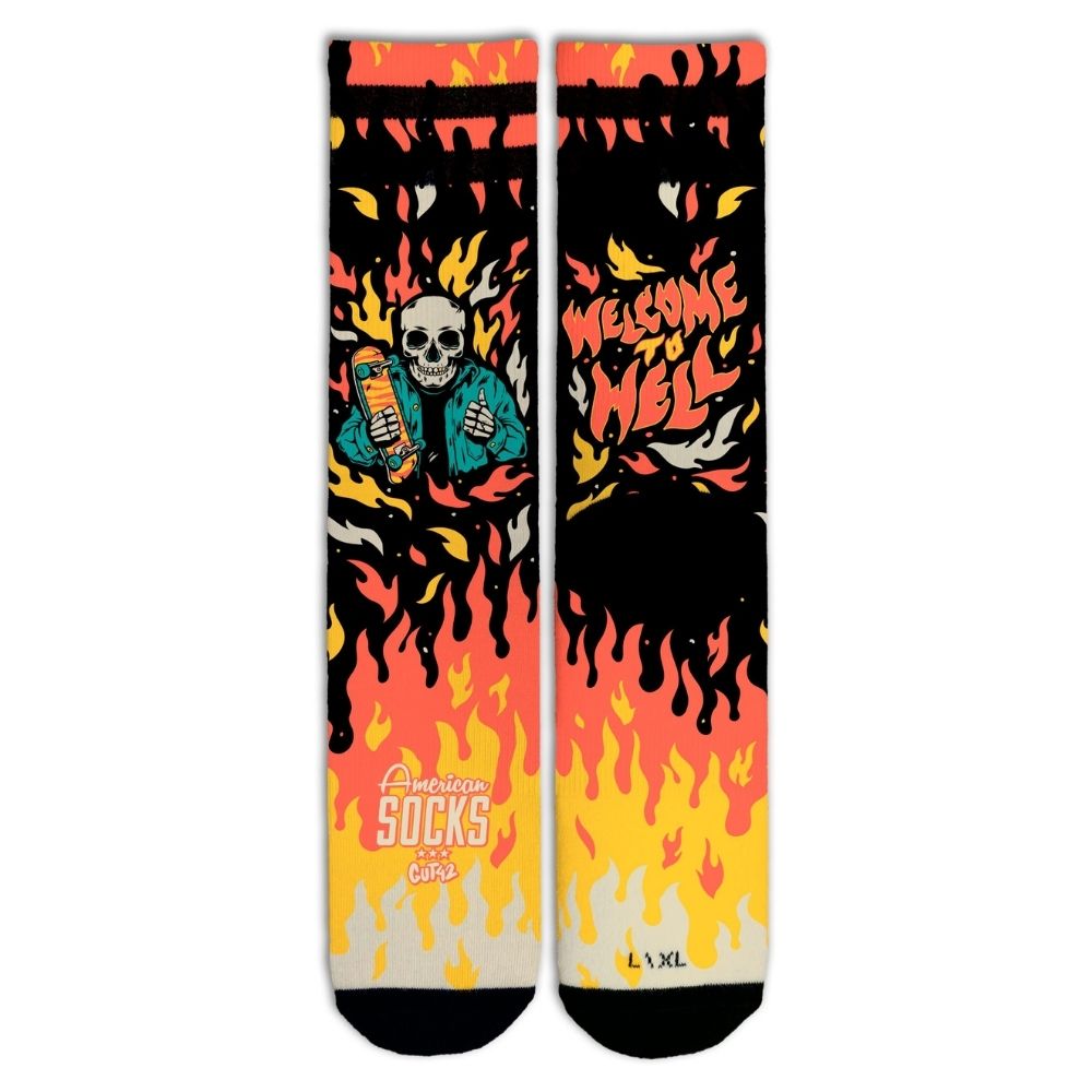American Socks Welcome to Hell er cool design til dig der elsker at skille dig ud. Uanset om du bruger dine American Socks til sport, fritid eller hygge så er du med til at skabe den gode stemning og bringe smilet frem. Find dit ynglings design eller glæd en ven med en værtsgave der varmer.