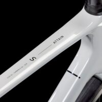 Ud over præstation har Cube Attain C:62 det visuelle punch, der skiller sig ud på landevejen. Med dens elegante linjer og moderne farvepalet, står denne cykel som et symbol på både sportslighed og æstetik.