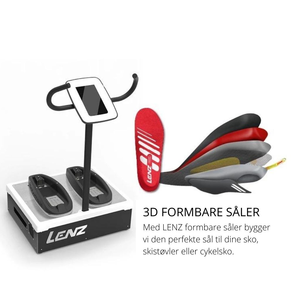 Lenz sål komfort er formstøbte såler til dine fødder. Takket være vores formbare såler bygger vi den helt rigtige støtte til dine fødder. Slut med smerter, vabler og kolde tæer på grund af manglende støtte i dit fodtøj.