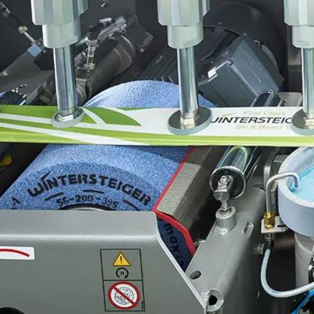 Skiservice er vigtigt for den helt rigtige oplevelse. Hos NewBike servicerer vi dine ski på en Wintersteiger automatisk stensliber med keramisk kantslib. Stenslibning er skånsom og giver en flot struktur i sålen. Strukturen kan indeholde den rette mængde voks så behandlingen holder længst muligt. Keramisk kantslibning giver helt glatte og skarpe kanter. Det mærker du tydeligt på pisterne. Skien står bedre fast og du oplever meget bedre kontrol. Efter slibning påføres flydende varmt voks så sålen står kniv skarpt!